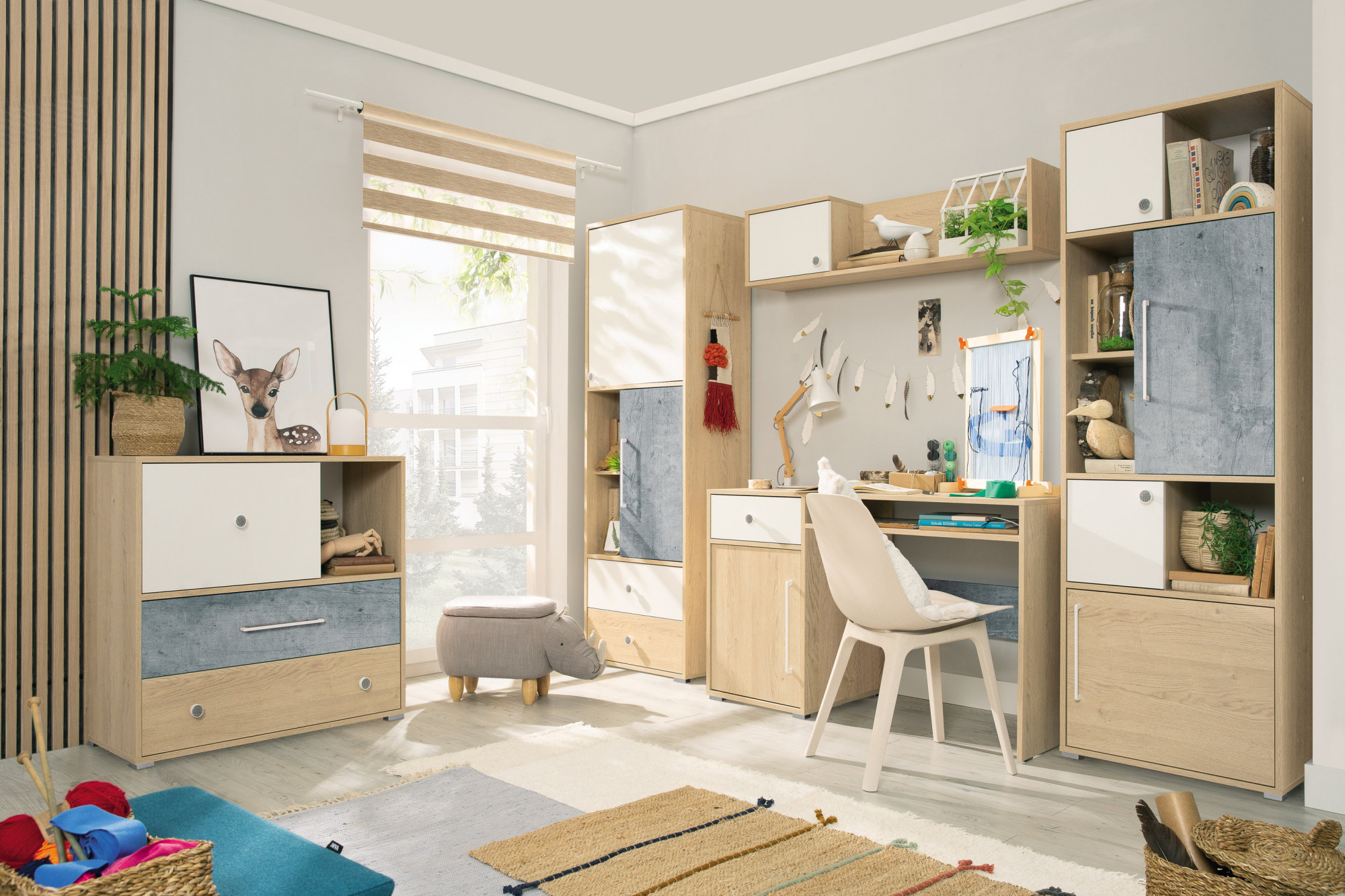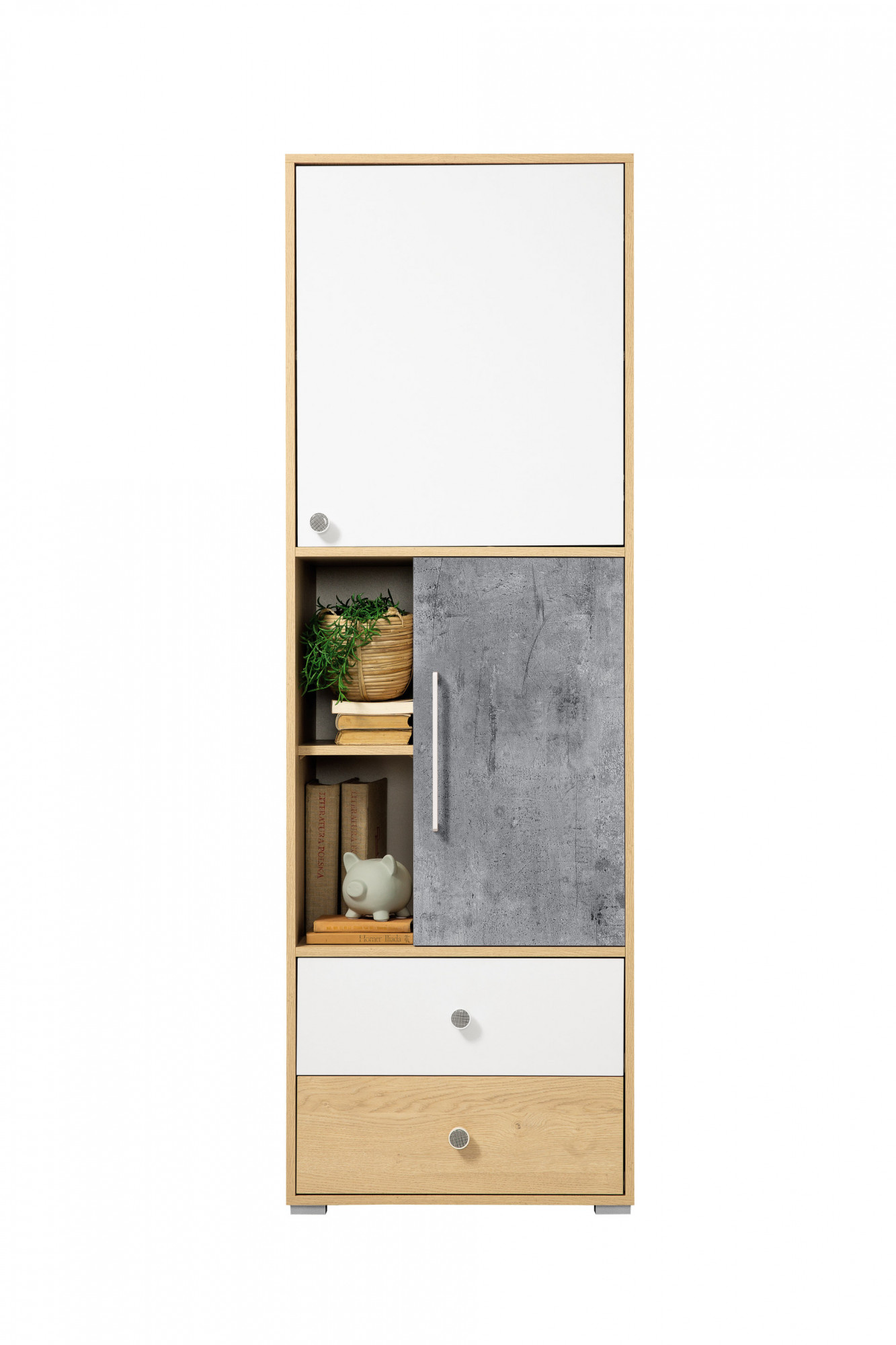 Regál STEP - ST3, Dub piškotový/Bílý Lux/Beton