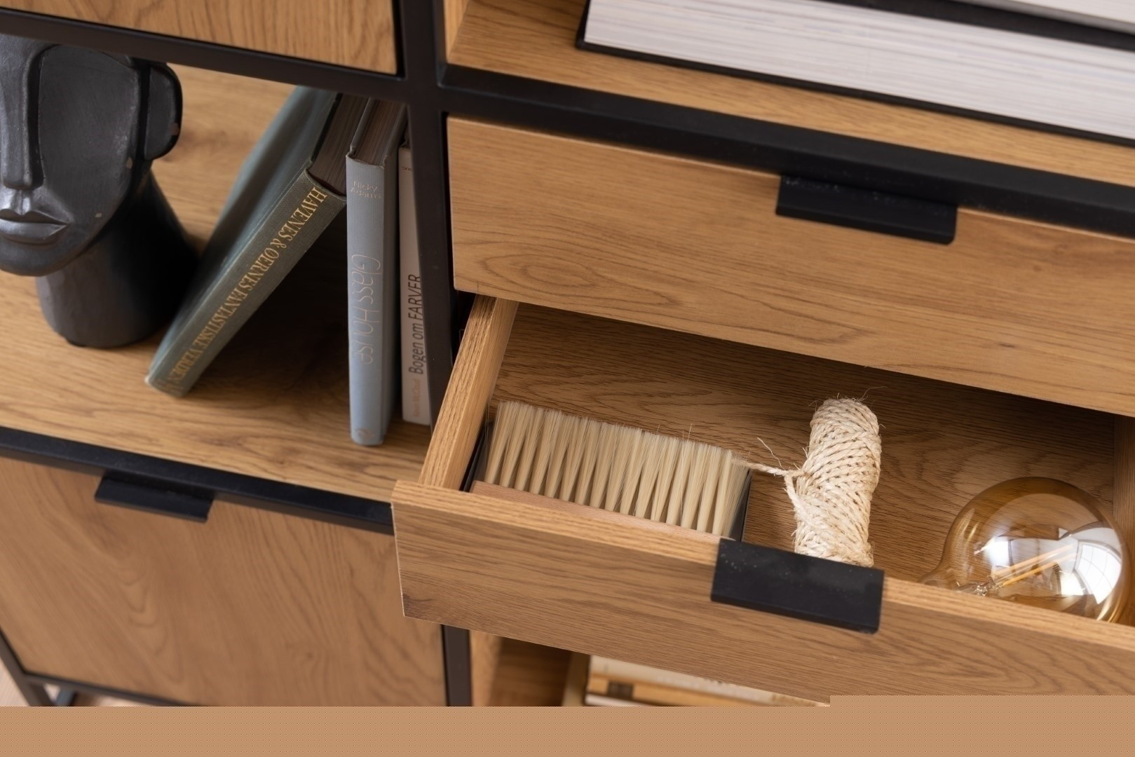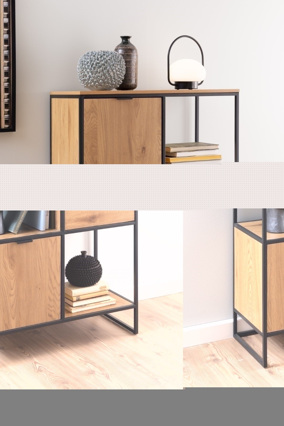 Regál Swindon je všestranný nábytek do kanceláře, obývacího pokoje, ložnice nebo dětského pokoje. Má kostru vyrobenou z práškově lakovaného kovu a prvky z laminované MDF desky. Regál má dvě skříňky, tři zásuvky a tři police. Lze na něm ukládat knihy, ubrusy a další věci denní potřeby, a pokud se rozhodneme na něj umístit např. váza s květinami, může se regál Swindon stát stylovou dekorací interiéru. Počet kartonů: 2 Rozměry kartonů: 90x43x9,5cm 145,5x85x10cm Hmotnost kartonů: 17,6kg 22,5kg