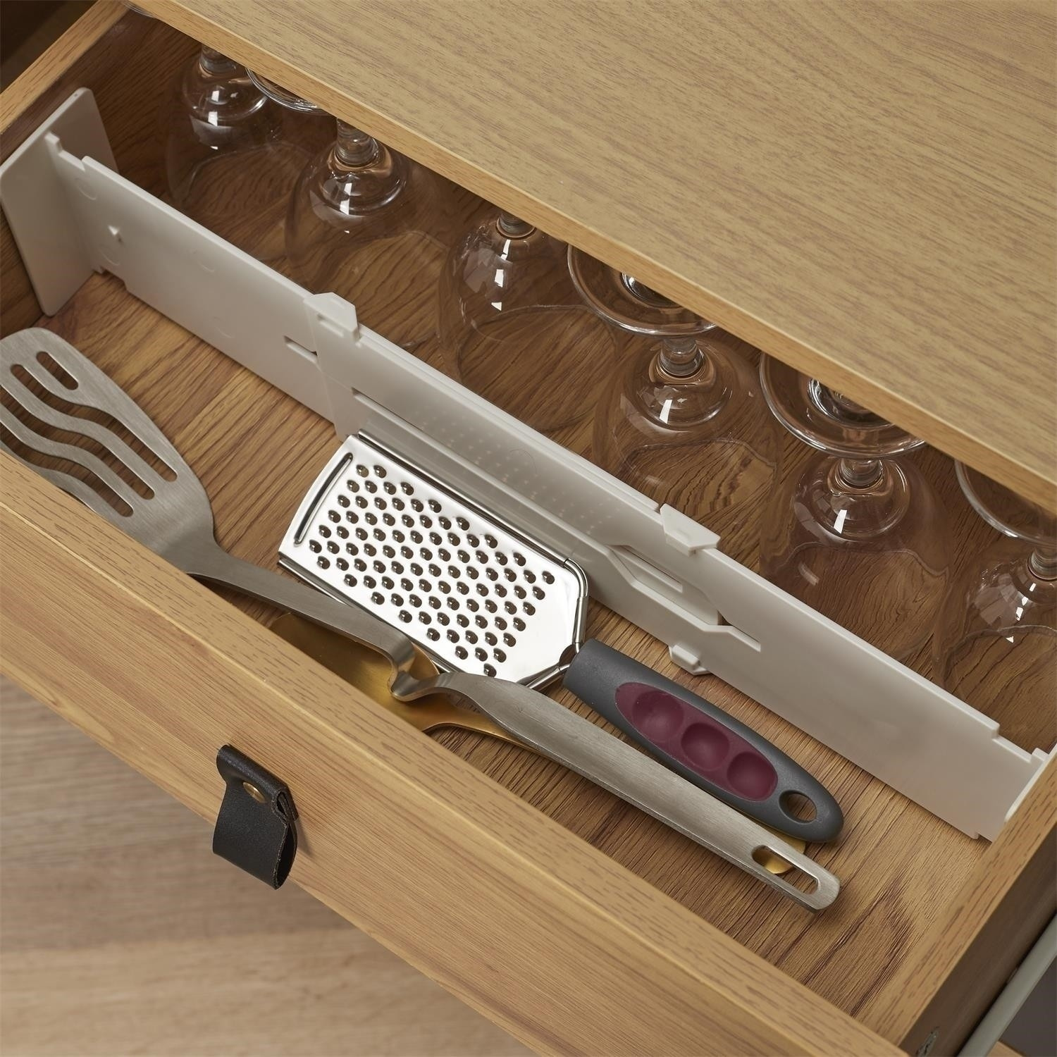 Regulovatelné bílé přepážky do zásuvek