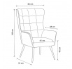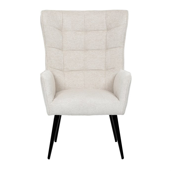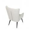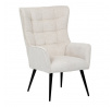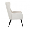 Křeslo s béžovým potahem z voděodolné látky kombinuje pohodlí s praktickým využitím v interiéru.Kovové prvky zajišťují stabilitu a dlouhou životnost. Designové prošití na opěradle a sedáku podtrhuje moderní vzhled a zároveň přispívá k pevnosti čalounění. Područky jsou integrované do celkového tvaru křesla, což zvyšuje komfort při sezení. Díky použitým materiálům je křeslo vhodné pro každodenní relaxaci s důrazem na snadnou údržbu a odolnost vůči vlhkosti.