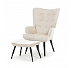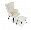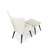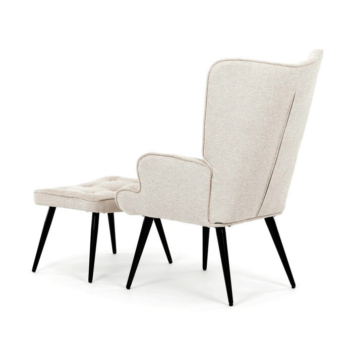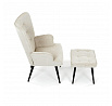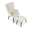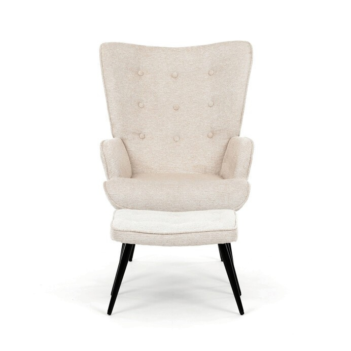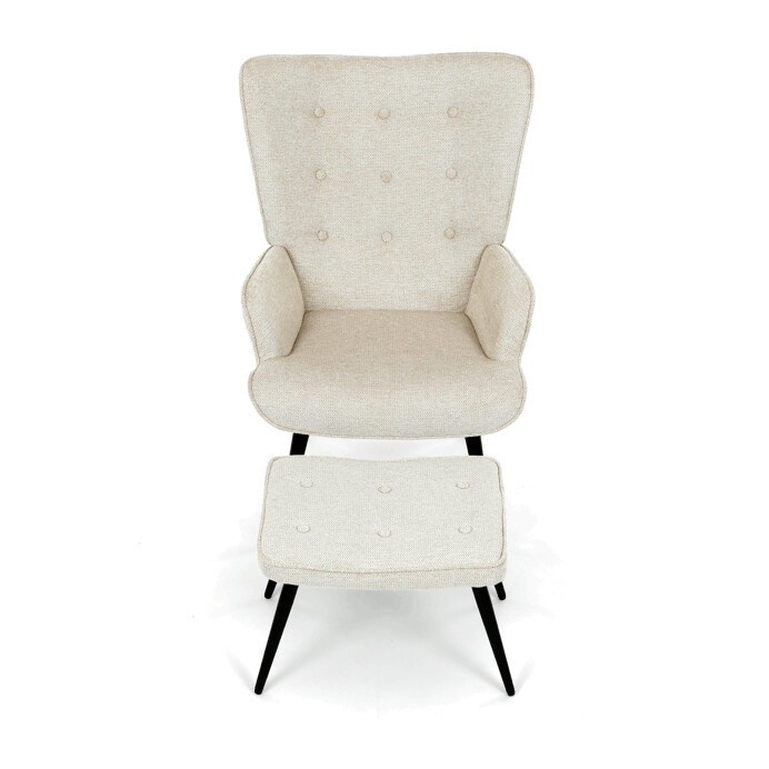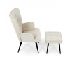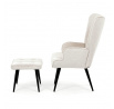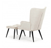 Relaxační křeslo s podnožkou v béžovém odstínu je potažené vodoodpudivou látkou, která usnadňuje údržbu a zvyšuje odolnost proti polití. Čalounění je příjemné na dotek a díky prémiové tkanině nabízí dlouhodobý komfort i při delším sezení. Křeslo disponuje pevnými černými kovovými nohami, které zajišťují stabilitu a bezpečnost. Součástí je také bonusový taburet se stejným potahem a designem, který umožňuje pohodlné opření nohou a doplňuje relaxační zážitek. Ergonomicky tvarované područky podporují správnou polohu paží a přispívají k celkovému pohodlí. Taburet je o šířce 48cm, hloubce 38cm a výšce 36cm.