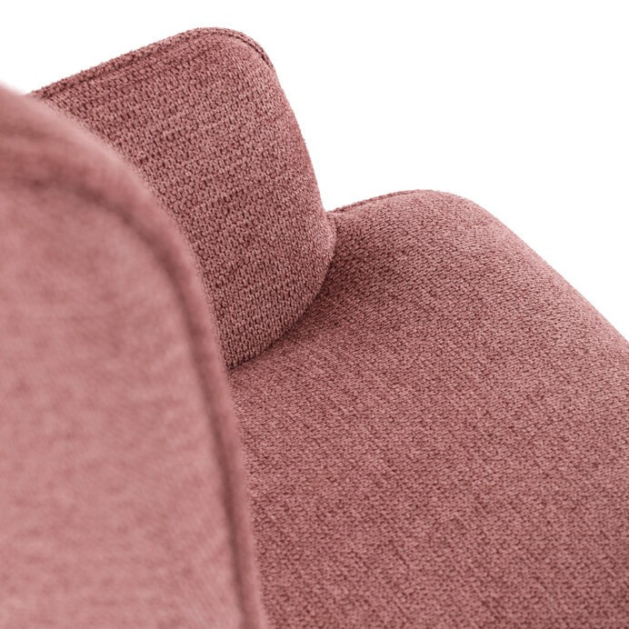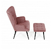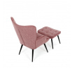 Relaxační křeslo s podnožkou v růžovém odstínu je potažené vodoodpudivou prémiovou látkou, která usnadňuje údržbu a zvyšuje odolnost proti polití. Čalounění je příjemné na dotek a doplněné o decentní prošívání s knoflíkovými detaily na opěradle, které podtrhují jeho stylový vzhled. Pevné černé kovové nohy zajišťují stabilitu a dlouhou životnost. Křeslo disponuje pohodlnými područi a ergonomicky tvarovaným opěradlem, které podporuje relaxaci a odpočinek. Součástí je také samostatný taburet se stejným čalouněním a konstrukcí, který umožňuje pohodlné podložení nohou. Taburet je o šířce 48cm, hloubce 38cm a výšce 36cm.