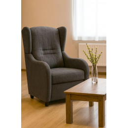 Pokud rádi relaxujete při sledování televize nebo s knihou, tak je pro Vás křeslo René tím pravým společníkem. Díky vysoké opěrce se pohodlně opřete a Vaše záda nebudou trpět. Při sledování televize si můžete ruce volně položit na loketní opěrky, Vaše tělo se uvolní, začnete relaxovat a Vy se budete cítit pohodově. Křeslo je očalouněno kvalitní potahovou látkou, nožky jsou ze dřeva. Z naší široké nabídky barev a vzorů si jistě vyberete to nejvhodnější křeslo, které se ve vašem pokoji bude nejlépe vyjímat.