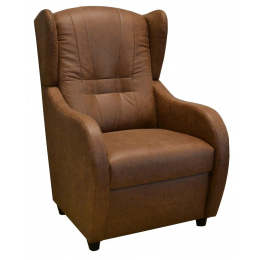 Pokud rádi relaxujete při sledování televize nebo s knihou, tak je pro Vás křeslo René tím pravým společníkem. Díky vysoké opěrce se pohodlně opřete a Vaše záda nebudou trpět. Při sledování televize si můžete ruce volně položit na loketní opěrky, Vaše tělo se uvolní, začnete relaxovat a Vy se budete cítit pohodově. Křeslo je očalouněno kvalitní potahovou látkou imitující kůži, nožky jsou ze dřeva. Z naší široké nabídky barev a vzorů si jistě vyberete to nejvhodnější křeslo, které se ve vašem pokoji bude nejlépe vyjímat. Zobrazení barev na fotografii se může od skutečnosti lišit.