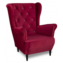 Relaxační křeslo ušák Selene K červená s krystaly