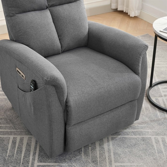 Objevte pohodlí a relaxaci s naším elektricky ovládaným relaxačním křeslem v moderní šedé barvě. Toto křeslo je navrženo tak, aby poskytovalo maximální komfort a zlepšilo váš domácí odpočinek. Ideální do obývacího pokoje, kde se stane vaším oblíbeným místem pro relaxaci.