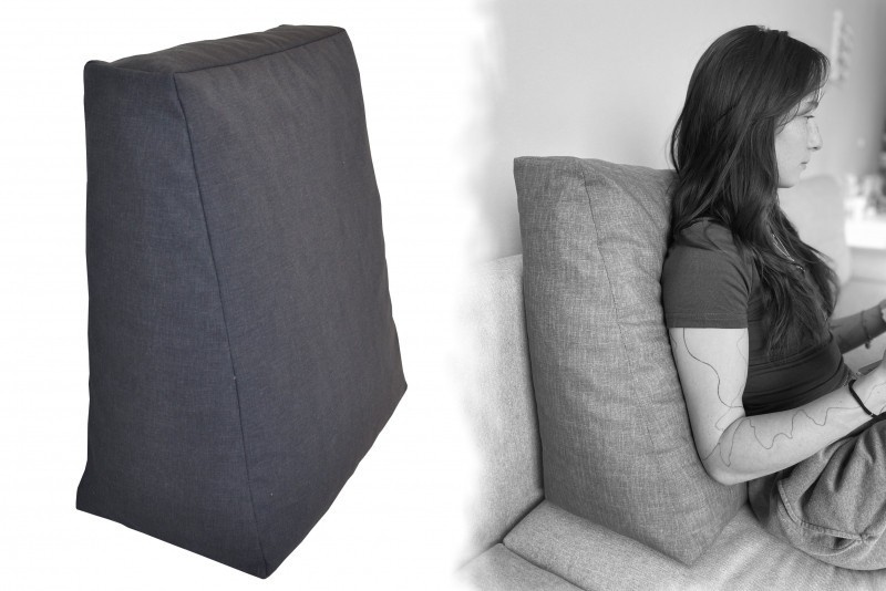 Relaxační polštář pro pohodlné sezení kde vás napadne. | Rádi sedíte na posteli a čtete knížku? Nebo rádi sedíte jen tak na zemi? Polštář si dáte za záda a sezení je dokonalé díky ideálnímu sklonu opěradla. Velikost polštáře je: šířka 50 cm, výška 55 cm. Tloušťka ve spodní části je 25 cm. Tloušťka v horní části je 10 cm. Polštář je vyplněn polyuretanovou drtí.