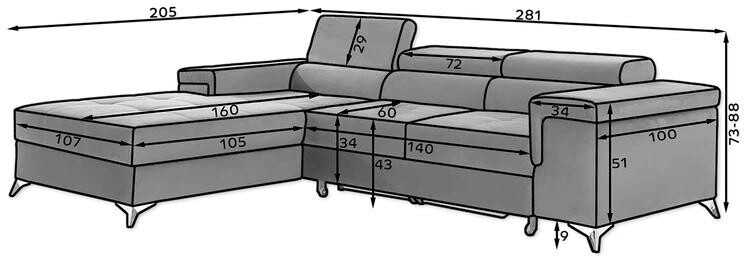 Tato rohová sedací souprava nabízí nejen styl, ale také praktické funkce, které oceníte každý den. Díky možnosti rozkládání se snadno promění v pohodlné lůžko s plochou na spaní o rozměrech 125 x 210 cm. To je ideální řešení pro hosty nebo pro ty, kteří si rádi dopřejí odpočinek během dne.