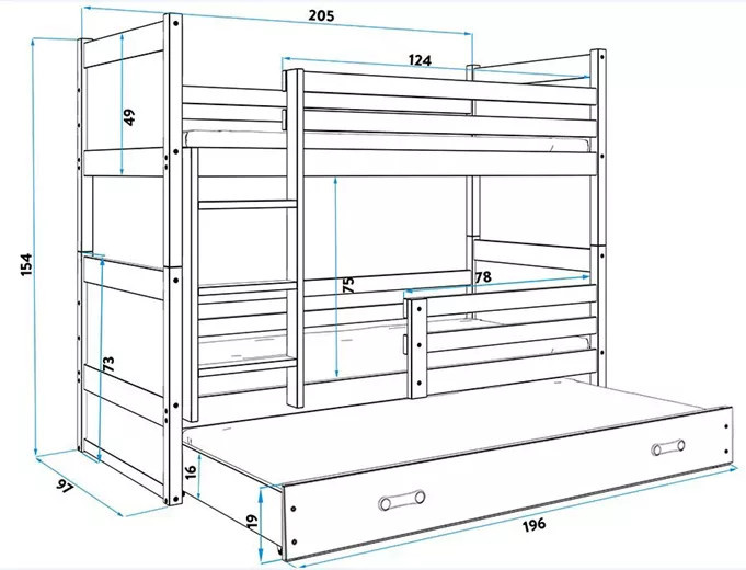 | Postel podle počtu spacích míst | Pro 3 děti |