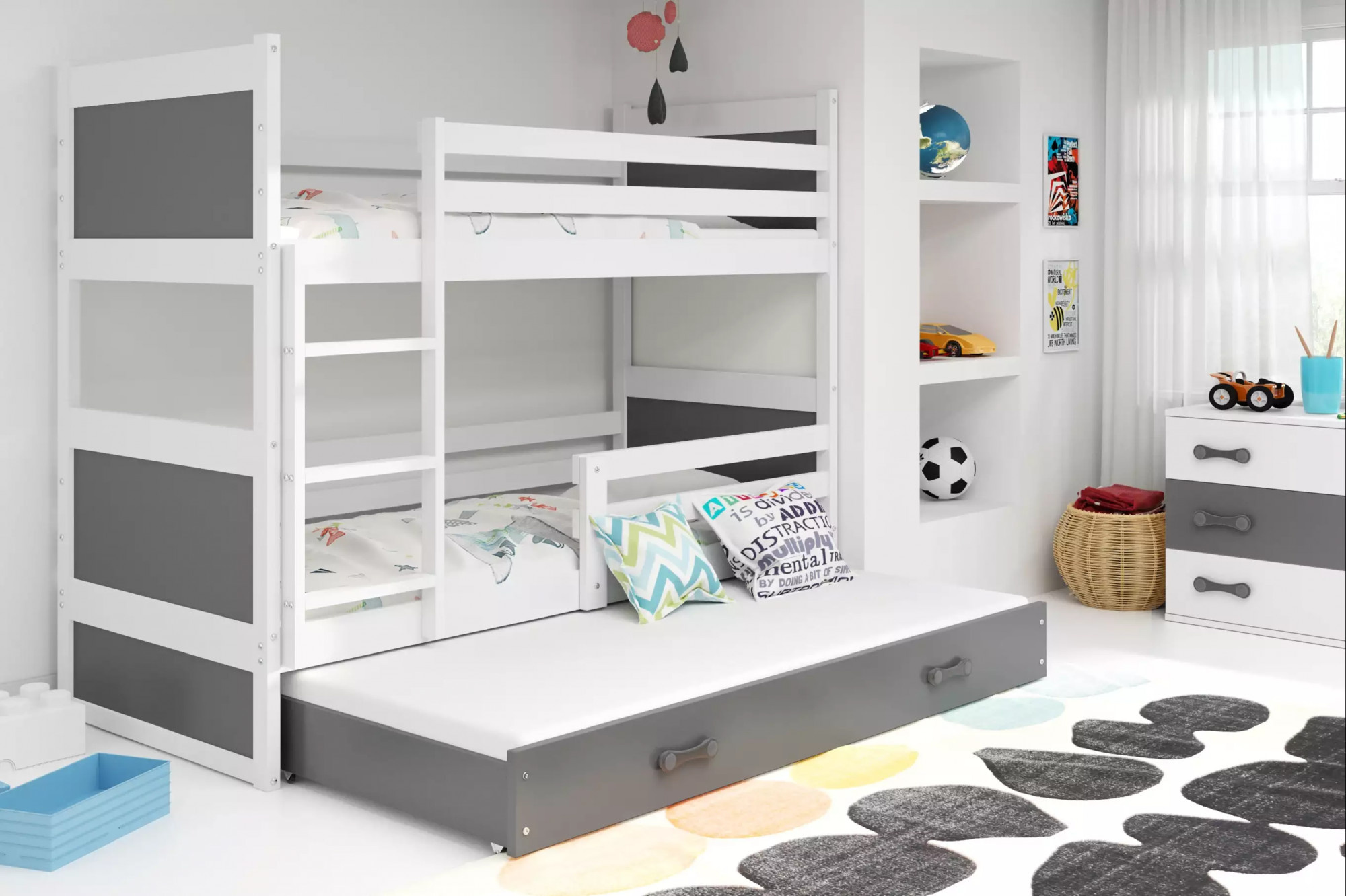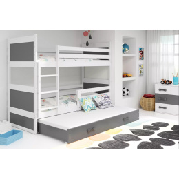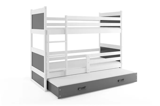 Dětská patrová postel RICO 3 s přistýlkou 90x200 cm, bez matrace, Bílá/Grafit