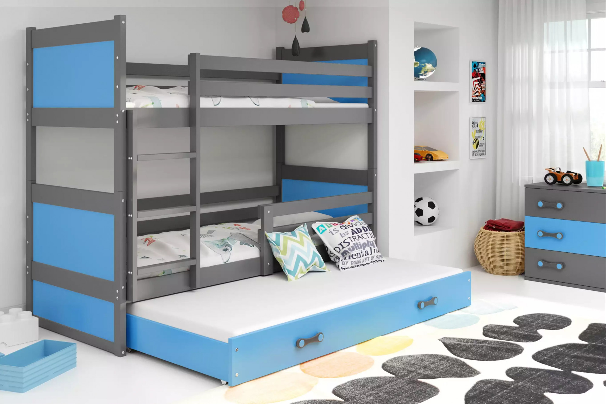 Dětská patrová postel RICO 3 s přistýlkou 90x200 cm, bez matrace, Grafit/Modrá