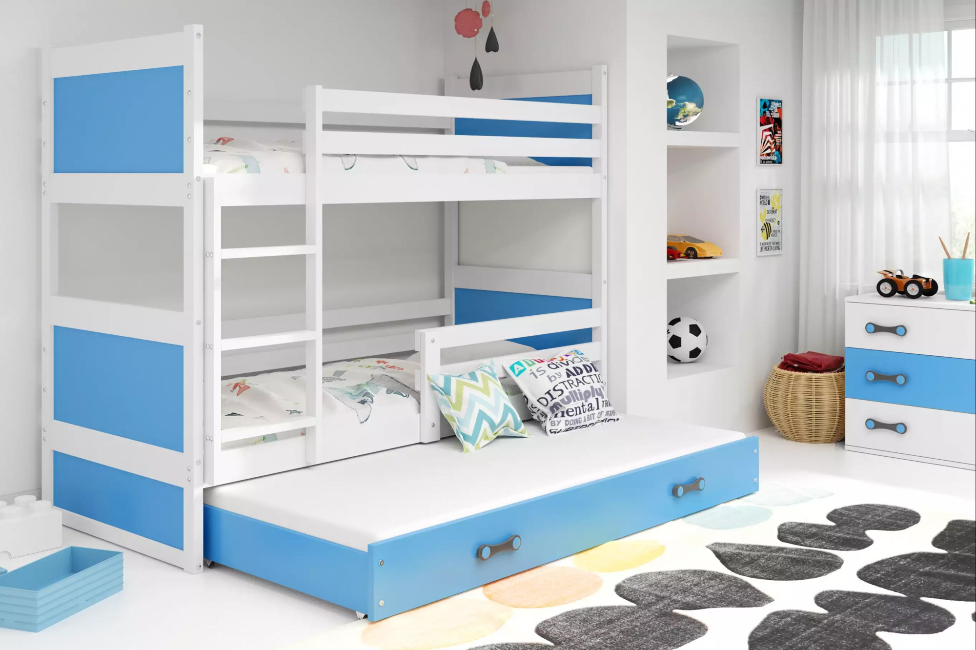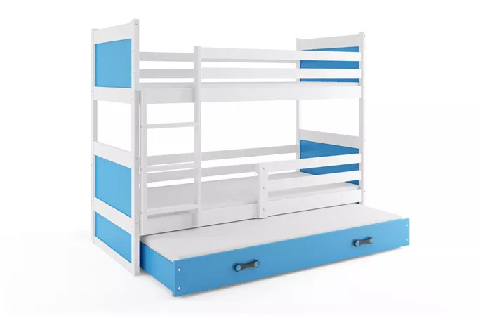 Dětská patrová postel RICO 3 s přistýlkou 90x200 cm, bez matrace, Bílá/Modrá