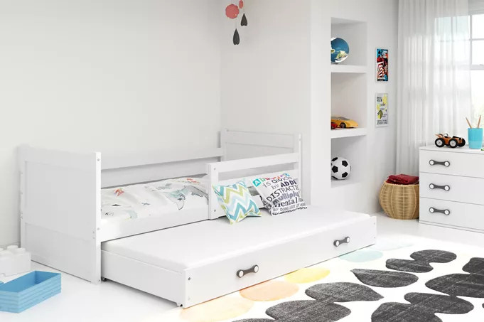 Dětská postel RICO s přistýlkou 90x200 cm, s matracemi, Bílá/Bílá