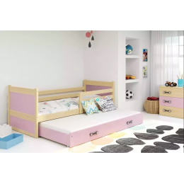Dětská postel RICO s přistýlkou 90x190 cm, s matracemi, Přírodní/Růžová