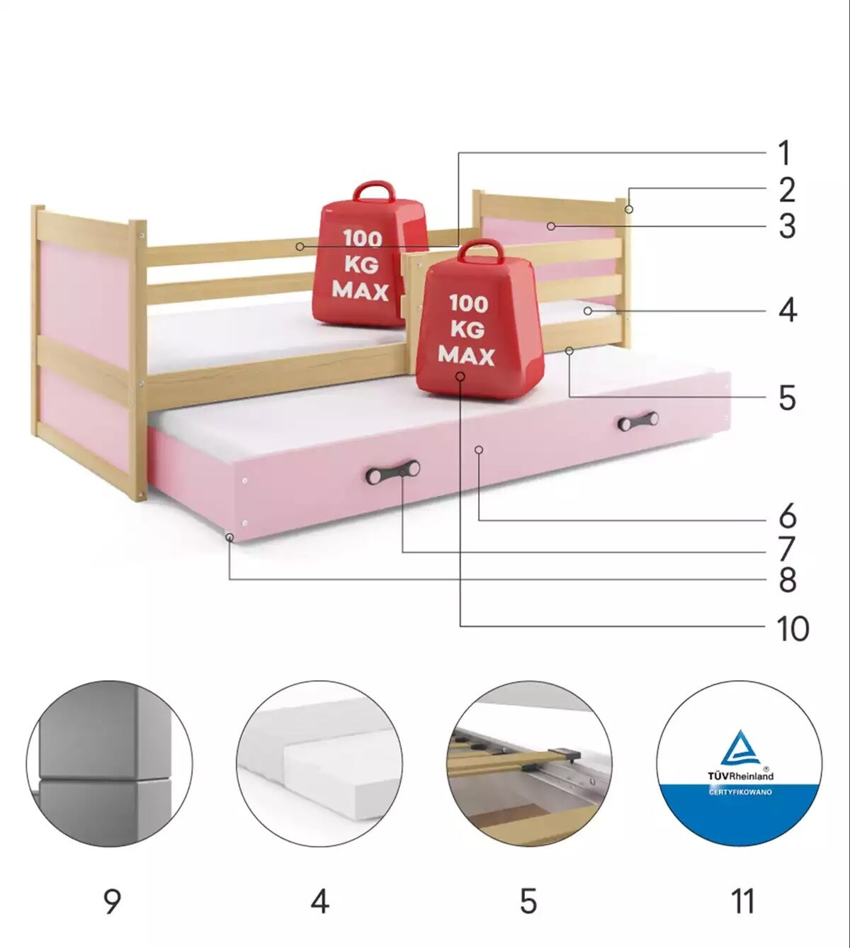 - Maximální zatížení postele je 100 kg