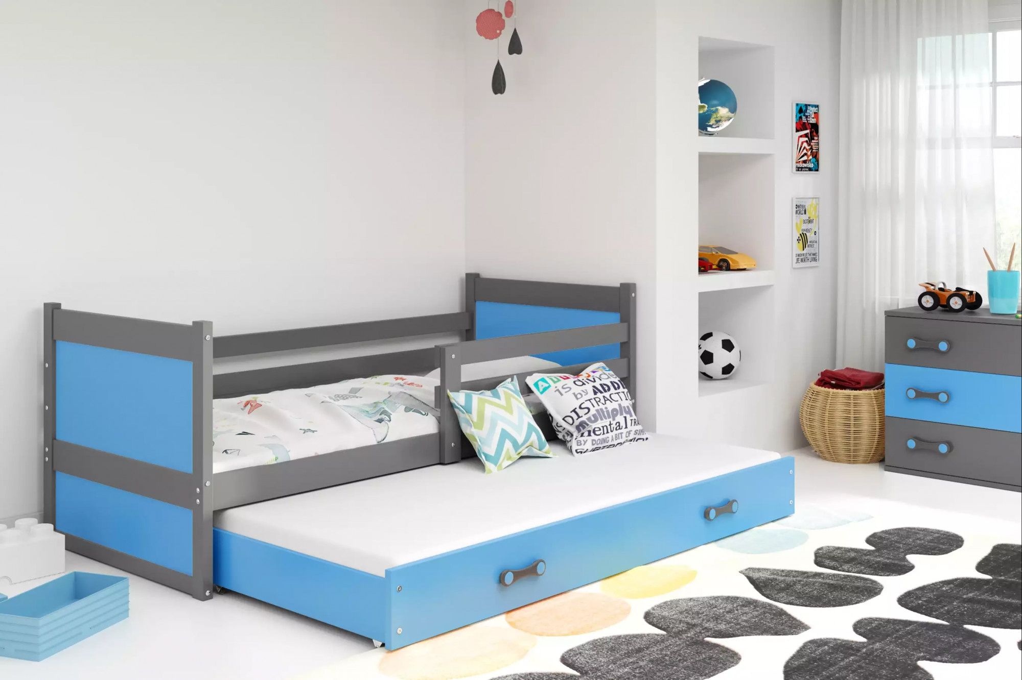 Dětská postel RICO Grafit/Modrá, s přistýlkou 90x200 cm, bez matrace
