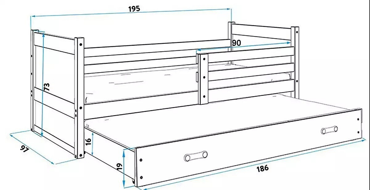 Dětská postel RICO s přistýlkou, Bílá/Modrá 90x190 cm, bez matrace