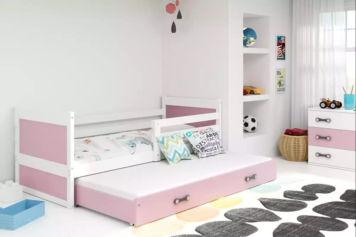 Dětská postel RICO Bílá/Růžová, s přistýlkou 90x200 cm, bez matrace