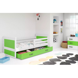 Dětská postel RICO 90x190 cm se šuplíkem, bez matrace, Bílá/Zelená