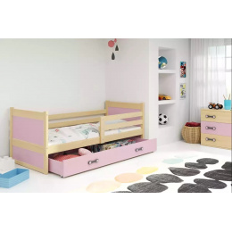 Dětská postel RICO 90x200 cm se šuplíkem, s matrací, Přírodní/Růžová