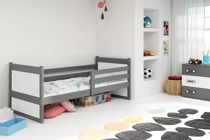 Dětská postel RICO 90x190 cm, bez matrace, Grafit/Bílá