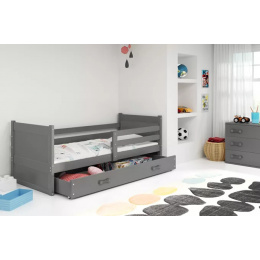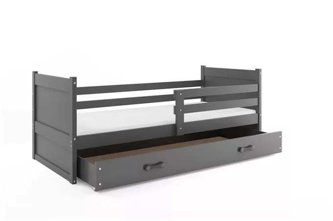 Dětská postel RICO 90x200 cm se šuplíkem, s matrací, Grafit/Grafit