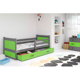Dětská postel RICO 90x190 cm se šuplíkem, bez matrace, Grafit/Zelená