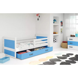 Dětská postel RICO 90x200 cm se šuplíkem, s matrací, Bílá/Modrá