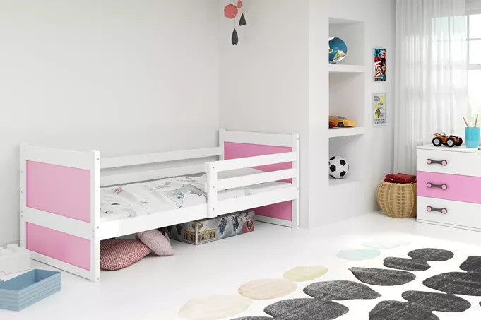 Dětská postel RICO 90x190 cm, s matrací, Bílá/Růžová