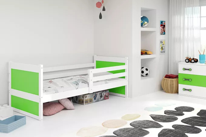 Dětská postel RICO 90x190 cm, s matrací, Bílá/Zelená