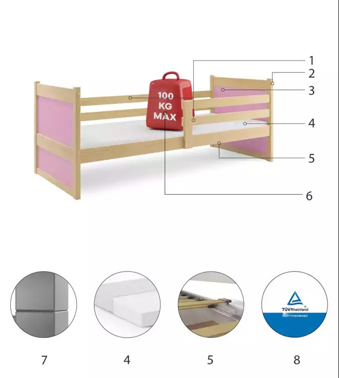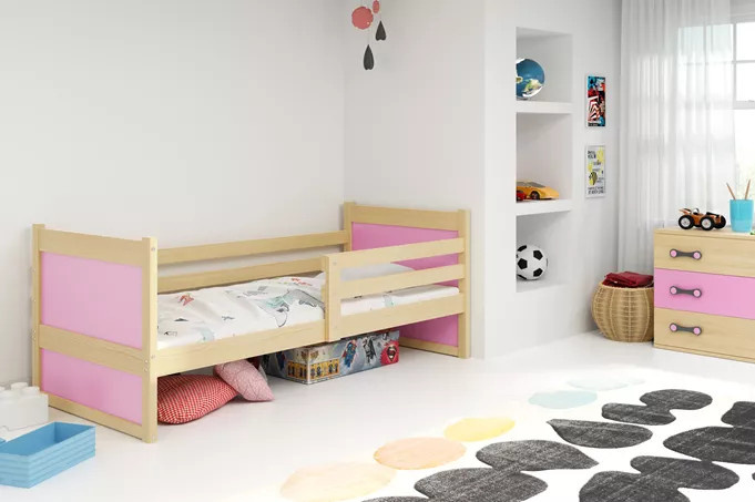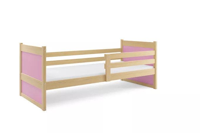 Dětská postel RICO 90x190 cm, s matrací, Přírodní/Růžová
