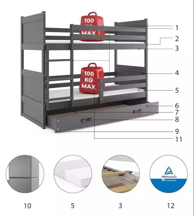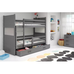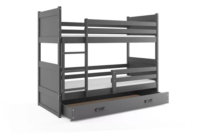 Dětská patrová postel RICO se šuplíkem 90x200 cm, bez matrace, Grafit/Grafit