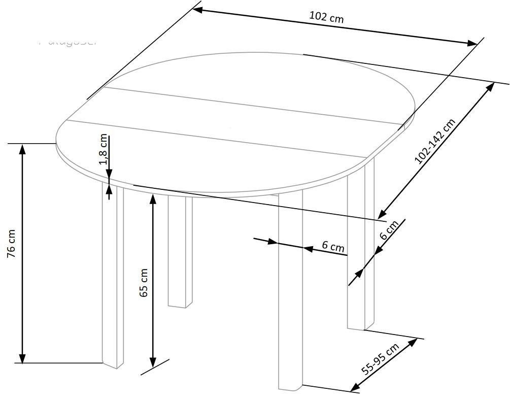 rozkládací stůl, rozměry: 102-142/102/76 cm, materiál: dřevotřísková deska s dýhou / MDF s dýhou, barva: deska - kašmír, nohy - černé