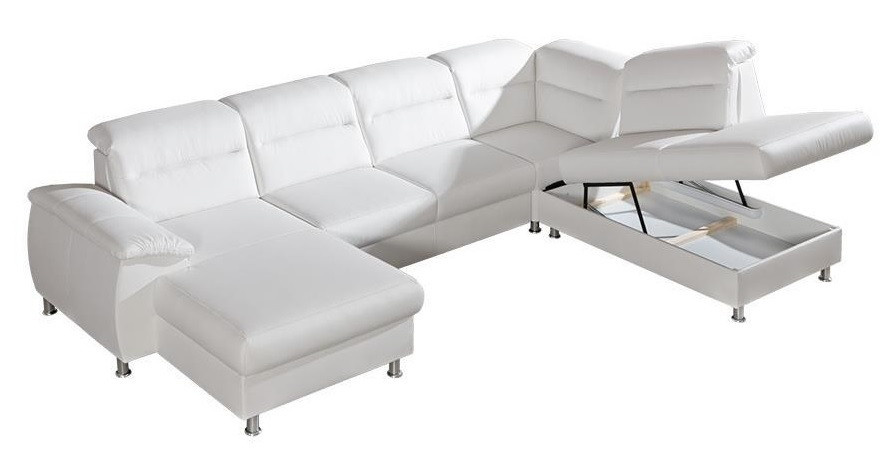 Moderní modulová sedací souprava. Varianta rohová sedací souprava levá s funkcí rozkladu a úložnými prostory - OT/P velká + 3/F + E + OT/P malá.