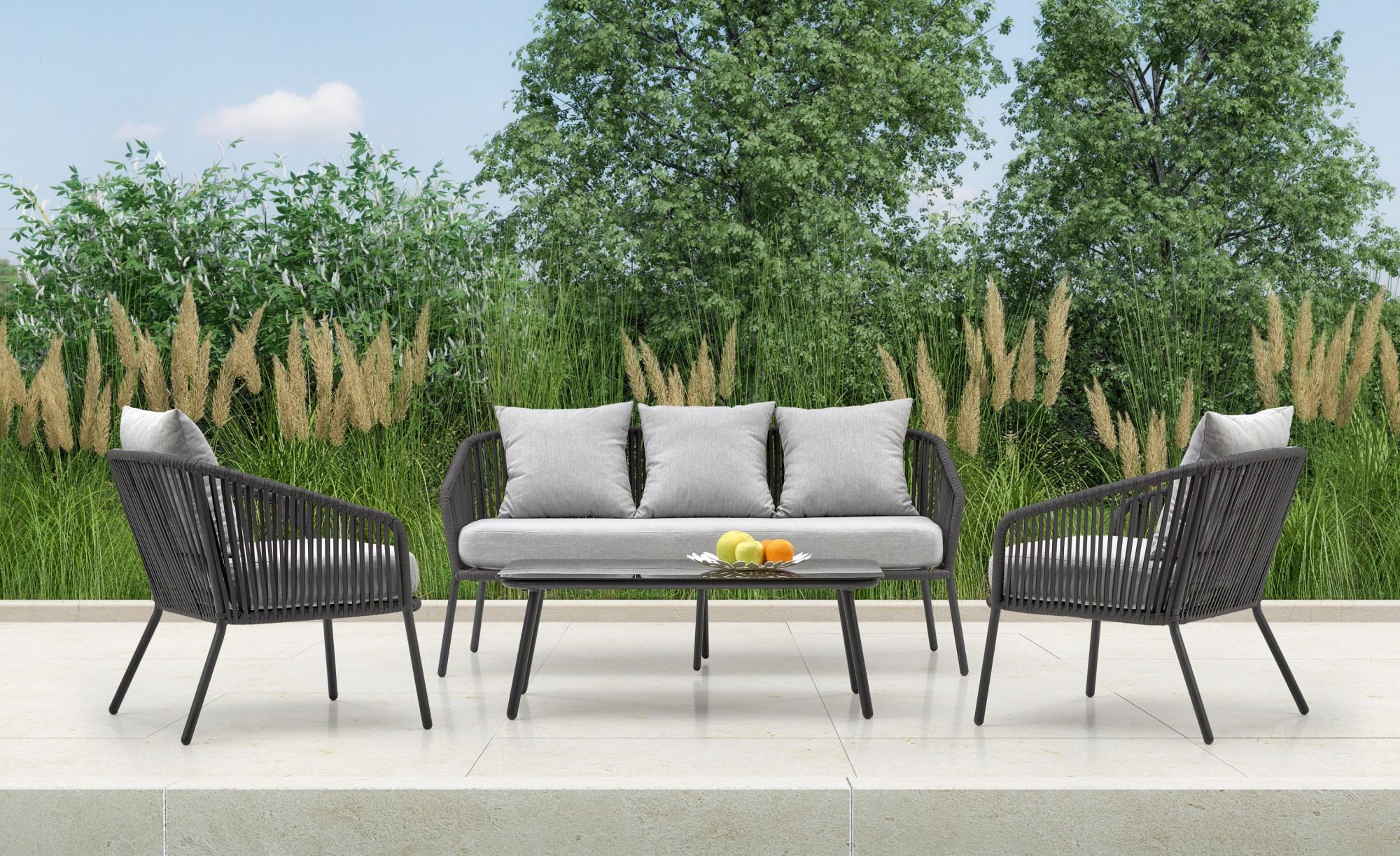 Zahradní set ROCCA ( pohovka+křeslo 2x+Konf. stůl), tmavě šedá/světle šedá