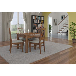 Sestava RODOS 38 je ideálním řešením pro klasickou, menší jídelnu. Součástí sady je pevný stůl a čtyři pohodlné židle. Stůl s jednoduchým designem a čtvercovou deskou umožní pohodlně usadit 4 osoby. Nábytek je velmi elegantní a pohodlný. Vyber barvu a kolekci látky a navrhni si svou vysněnou sadu.