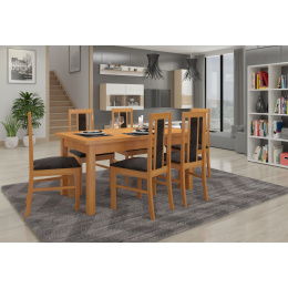 Sestava RODOS 59 je ideálním řešením pro klasickou jídelnu. Součástí sady je pevný stůl a šest pohodlných židlí. Stůl s jednoduchým designem umožní pohodlně usadit 6 osob. Nábytek je velmi elegantní a pohodlný. Vyber barvu a kolekci látky a navrhni si svou vysněnou sadu.