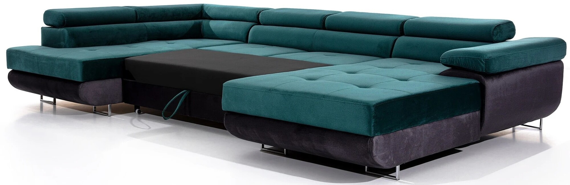Objevte dokonalou kombinaci stylu, pohodlí a funkčnosti s naší rohovou pohovkou Rodrigo. Tato pohovka ve tvaru U je navržena tak, aby se stala středobodem vašeho obývacího pokoje, a to díky svému modernímu designu a elegantním detailům.