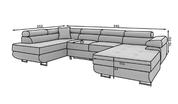 S rozměry 345 x 202 x 90 cm nabízí Rodrigo dostatek prostoru pro celou rodinu i přátele. Pohodlně se usaďte a užijte si relaxaci během dne. A když přijde noc, snadno ji přeměníte na prostorné lůžko o rozměrech 125 x 266 cm, které zaručuje maximální komfort pro klidný spánek.