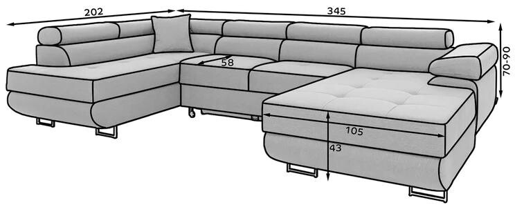 S rozměry 345 x 202 x 90 cm nabízí Rodrigo dostatek prostoru pro celou rodinu i přátele. Pohodlně se usaďte a užijte si relaxaci během dne. A když přijde noc, snadno ji přeměníte na prostorné lůžko o rozměrech 125 x 266 cm, které zaručuje maximální komfort pro klidný spánek.