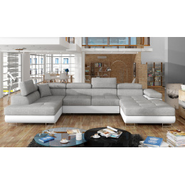 Objevte dokonalou kombinaci stylu, pohodlí a funkčnosti s naší rohovou pohovkou Rodrigo. Tato pohovka ve tvaru U je navržena tak, aby se stala středobodem vašeho obývacího pokoje, a to díky svému modernímu designu a elegantním detailům.