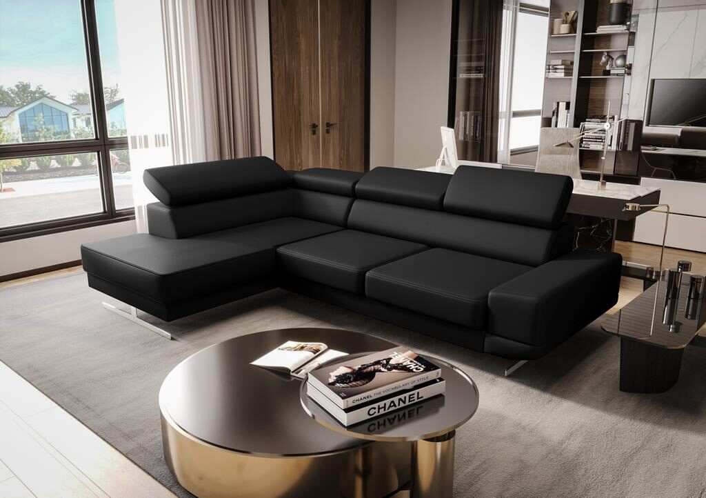 Rohová Kožená sedací souprava MILANO I - černá , levá