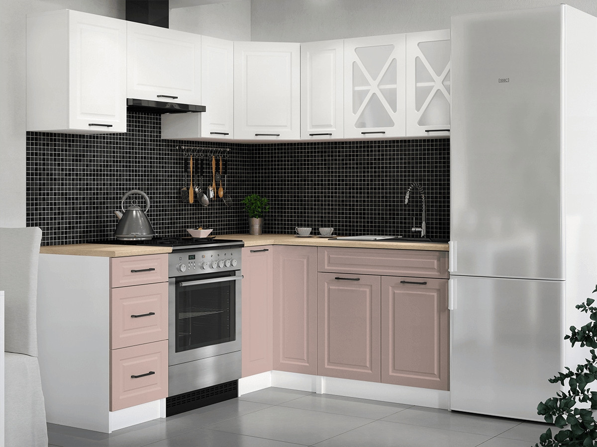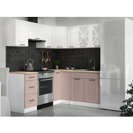 Rohová kuchyňská linka Astra bílá/růžová MAT