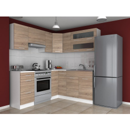 Kuchyňská linka je důležitým vybavením Vaší kuchyně, ale také designovým prvkem interiéru. Ať už to bude v paneláku, nebo rodinném domě, určitě se bude ve Vaší kuchyni krásně vyjímat. Skříňky nabízejí dostatek úložného prostoru na nádobí i dostatek pracovního prostoru. Rohová kuchyňská linka Etel je vyrobená z lamina 18 mm, které je odolné a snadné na údržbu. Skříňky jsou samostatné, takže si kuchyň můžete sestavit buď tak, jak je vyobrazeno na fotografii, nebo si je můžete sestavit podle toho, jak Vám to bude vyhovovat. Kuchyň je dodávána v demontu BEZ PRACOVNÍ DESKY. Součástí je montážní plánek včetně všech potřebných spojovacích materiálů. Cena je uvedena za sestavu vyobrazenou na úvodní fotografii. Spotřebiče, baterie a dekorace nejsou v ceně. Zobrazení barev na fotografii se může od skutečnosti lišit.
