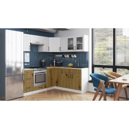 Rohová kuchyňská linka Romana bílá/artisan MAT
