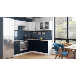 Rohová kuchyňská linka Romana bílá/tm.modrá MAT
