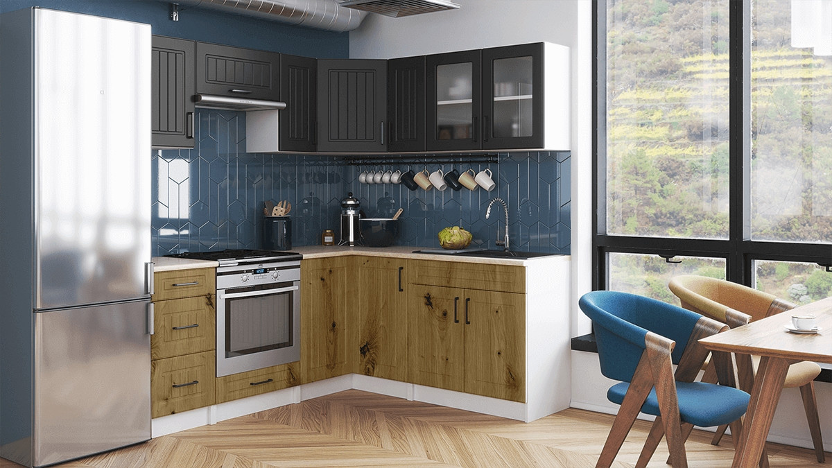 Kuchyňská linka Romana je vyrobená ve venkovském stylu, který se hodí do kuchyně v paneláku i v rodinném domě. Tento styl má jedinečnou schopnost proměnit Vaši kuchyň v útulnou a zároveň funkční místnost, kde bude radost vařit i péct. Rohová kuchyňská linka Romana nabízí dostatek úložného i pracovního prostoru. Kuchyňské skříňky jsou samostatné, takže si je můžete sestavit podle potřeby tak, jak Vám to vyhovuje. Korpusy skříněk jsou vyrobené z lamina 18 mm s hranami ABS a dvířka jsou MDF 16mm. Všechny skříňky jsou dodávány v demontu. Součástí balení je montážní plánek včetně všech potřebných spojovacích prvků. Cena je uvedena za sestavu vyobrazenou na úvodní fotografii BEZ PRACOVNÍ DESKY, s úchytkami, které jsou vyobrazeny v doplňkových fotografiích. Pracovní desku lze dokoupit nad každou skříňku zvlášť podle její šíře. Vyobrazené spotřebiče, dřez, baterie, doplňky a dekorace nejsou v ceně. Kuchyň bude dodaná s bílými korpusy a dvířky v odstínu grafit a artisan. Zobrazení barev na fotografii se může od skutečnosti lišit.