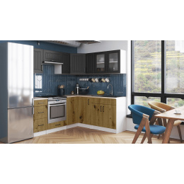 Rohová kuchyňská linka Romana grafit/artisan MAT