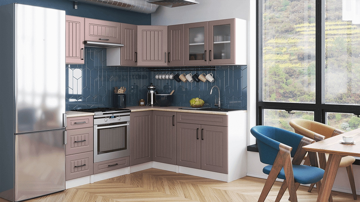 Rohová kuchyňská linka Romana růžová MAT