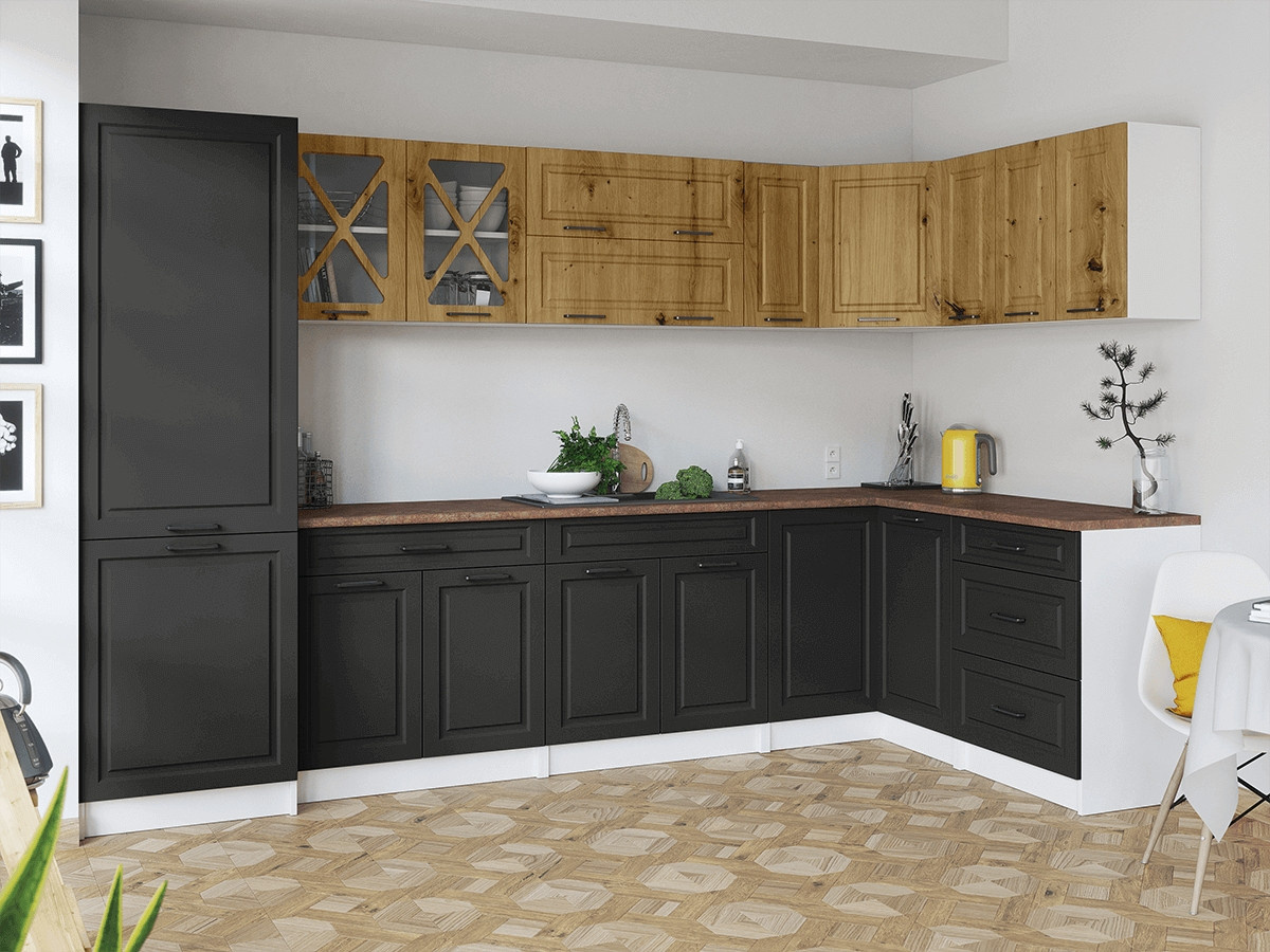 Rohová kuchyňská linka Simea artisan/grafit MATRohová kuchyňská linka Simea artisan/grafit MAT